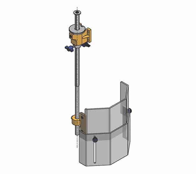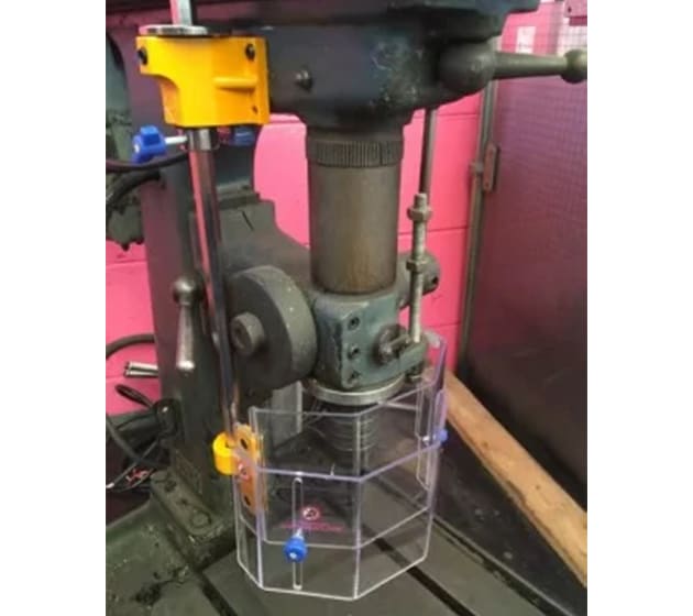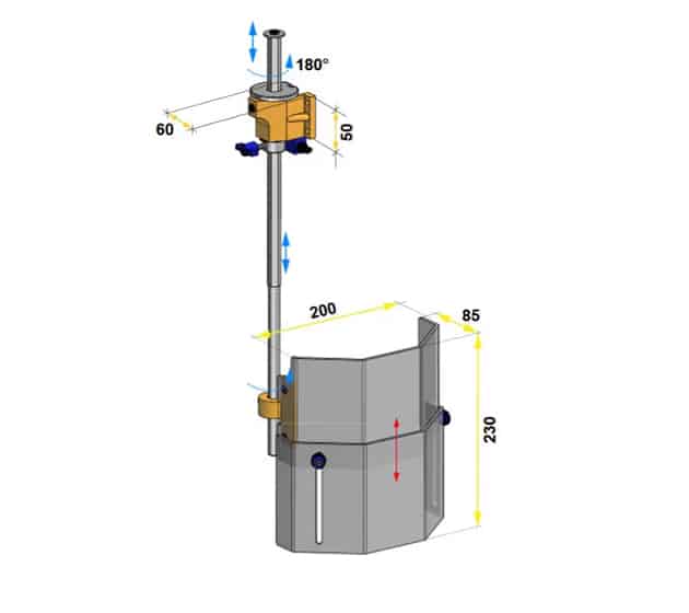 Borrskydd komplett med dubbel polykarbonatskärm, justerbar i höjd, med 60 x 50 mm stativ, komplett med säkerhetsmikrobrytare.