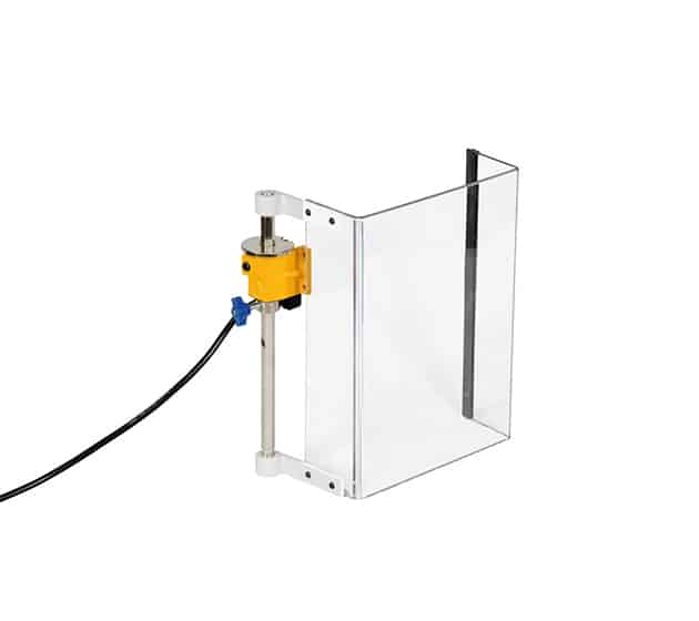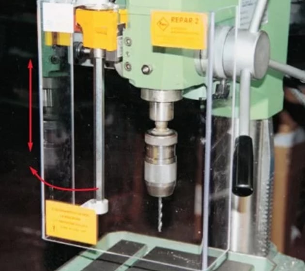 Borrskydd i polykarbonat, justerbart i höjd, komplett med säkerhetsmikrobrytare.