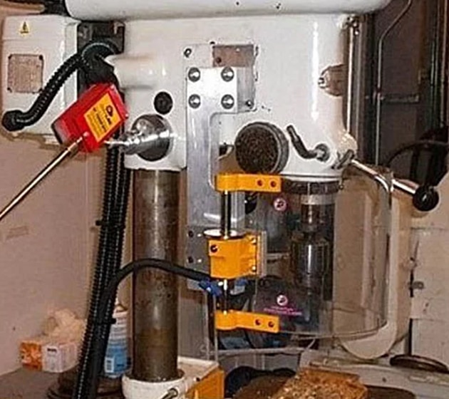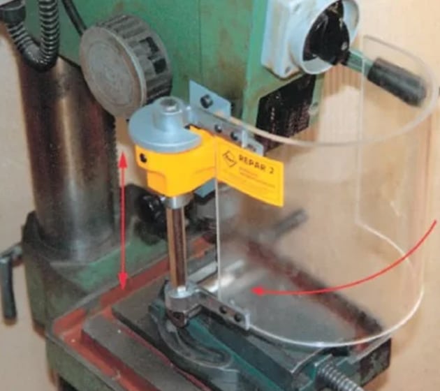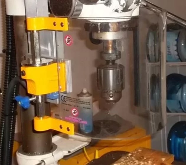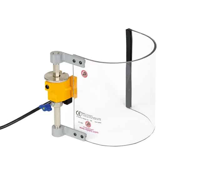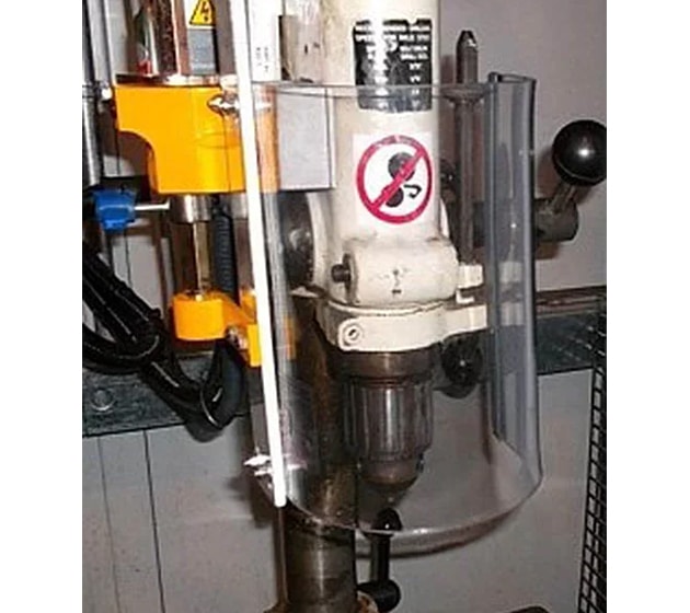 Borrskydd i polykarbonat, justerbart i höjd, komplett med säkerhetsmikrobrytare.
