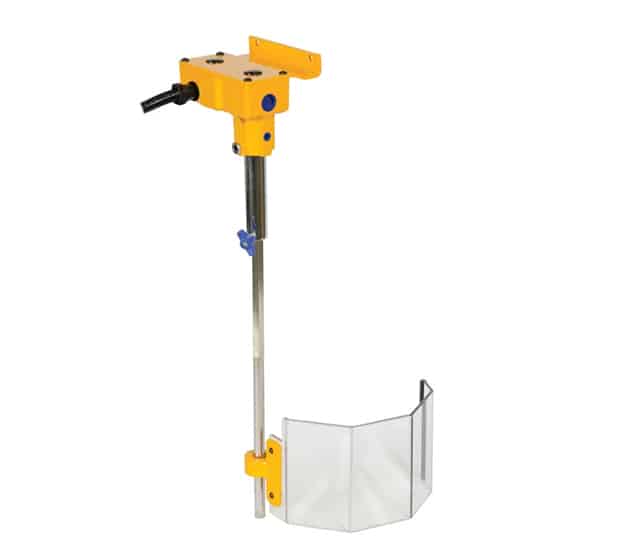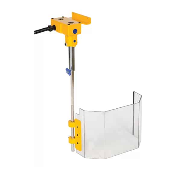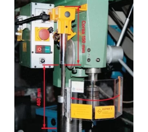 Borrskydd i polykarbonat, justerbart i höjd, med 150 mm slaglängd, komplett med säkerhetsmikrobrytare.