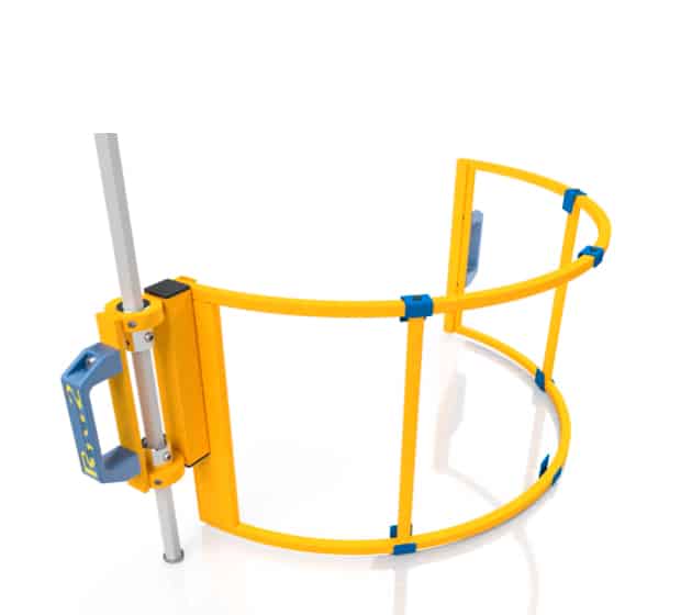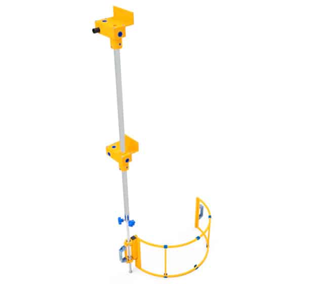 Radiella borrskydd, stål- och polykarbonatskärm, höjdjusterbara med säkerhetsmikrobrytare.