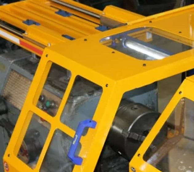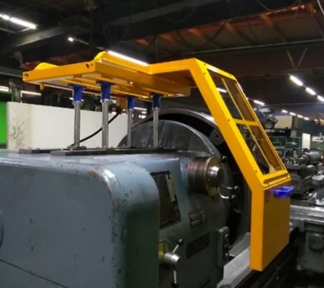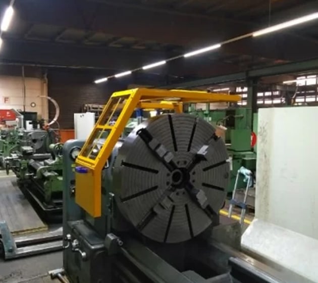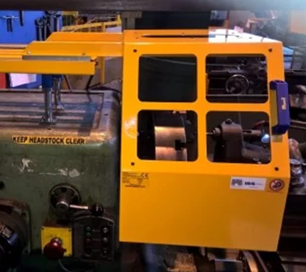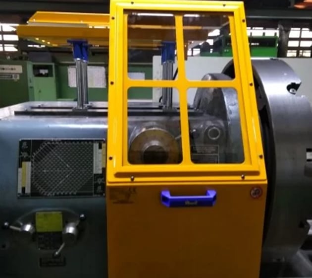 Glidskydd på kulhylsor, för montering på svarvhuvudet. Tillverkad av plåt med polykarbonatskärm. Komplett med mikrobrytare, anpassningsbar till alla typer av svarvar tack vare dubbel positioneringsmöjlighet.