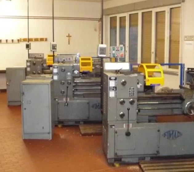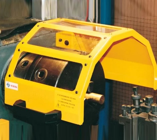 Svarvspindelskydd med robust plåtkonstruktion utrustad med stora polykarbonatfönster och säkerhetsmikrobrytare. Alla stödenheter är utrustade med justerbar koppling.