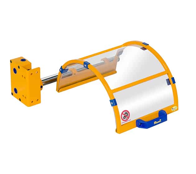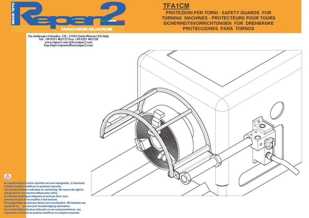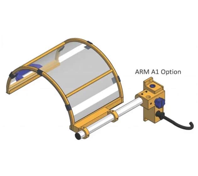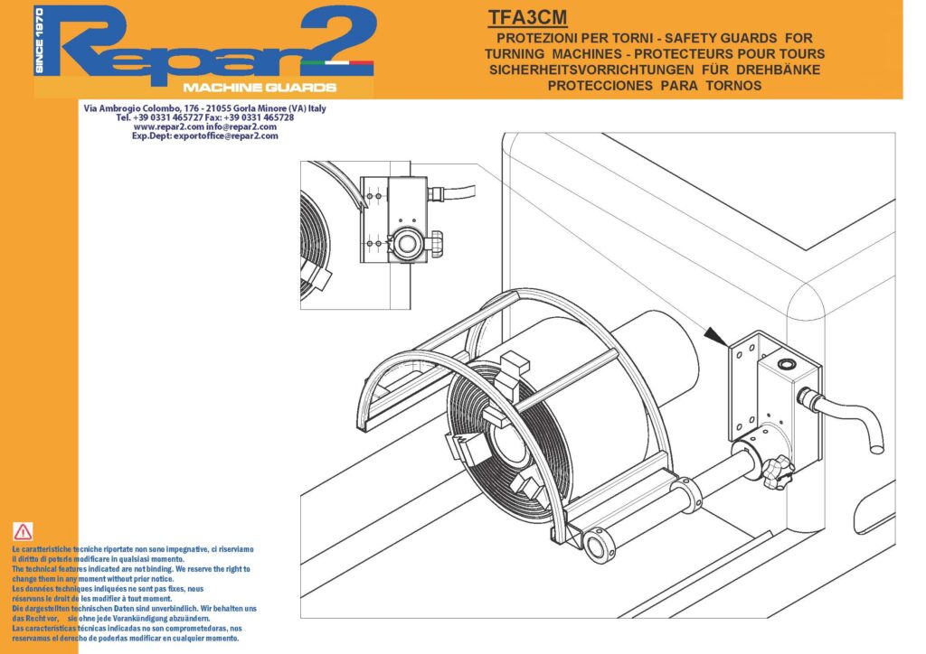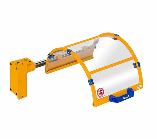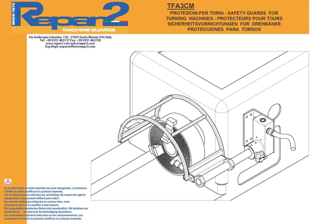 Ram i svarvskärm av polykarbonat och säkerhetsmikrobrytare.