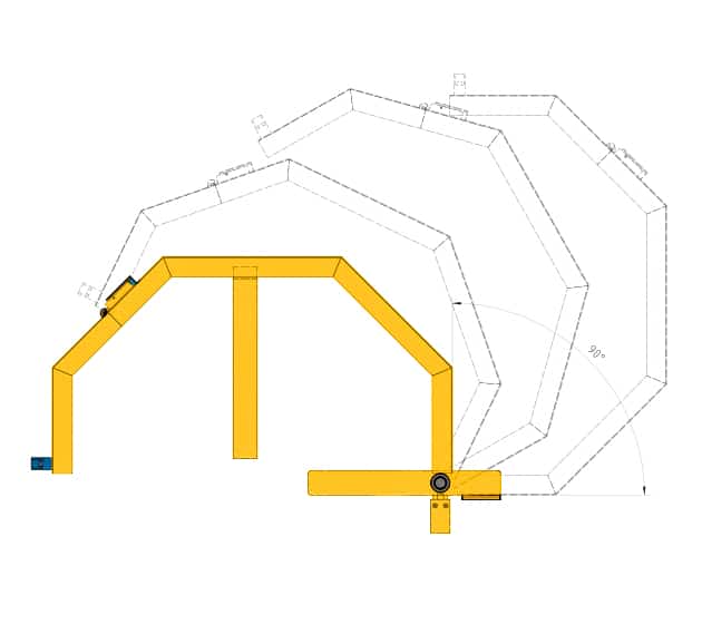 Skydd för svarvar med medelstora till stora plattformar eller chuckar. Stålram med dubbla gångjärn för full lutning, komplett med dubbel mikrobrytare.