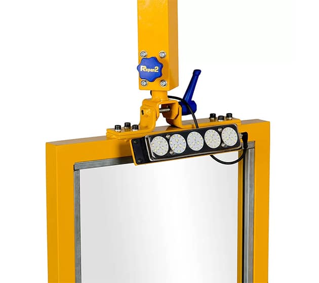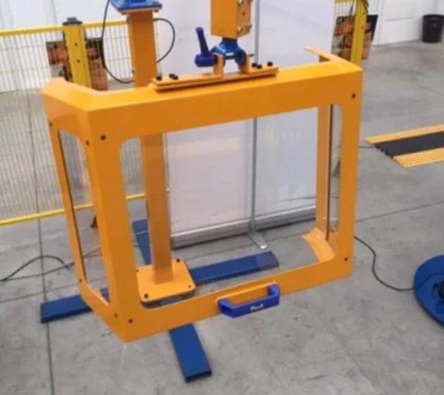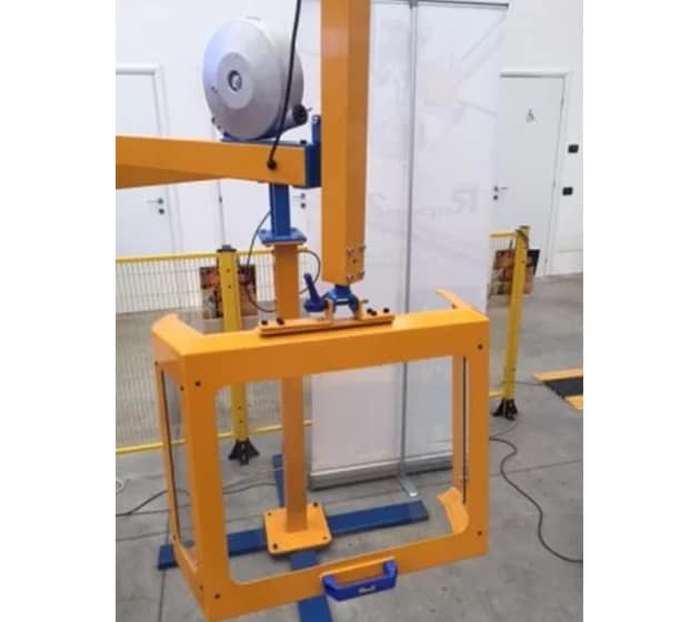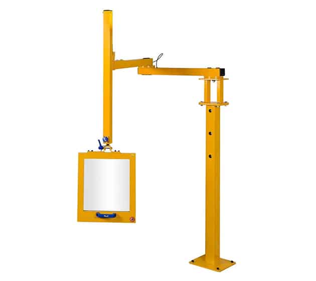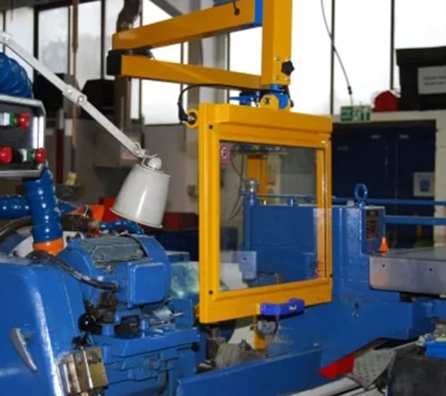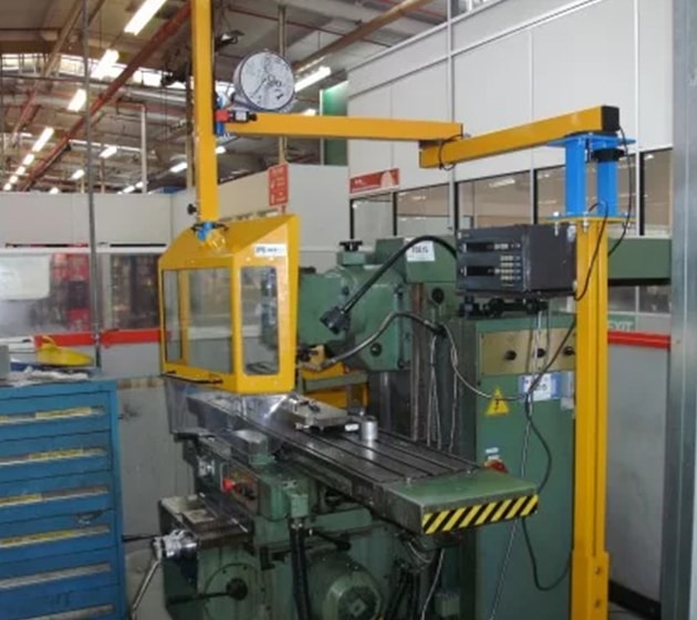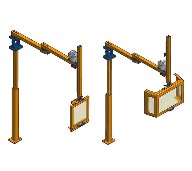Universalskyddet är upphängt i en ledad arm, utrustad med en motvikt, vilket möjliggör maximal rörlighet både horisontellt och vertikalt. På så sätt kan skyddet enkelt flyttas till exakt önskad position. Vertikal rörelse underlättas också genom viktkompensation och en fjäderanordning. Skyddet kan utrustas med belysning för arbetsområdet. De tre skärmarna är tillverkade av flerskiktsglas.